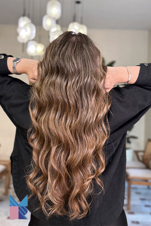 ویژگی ها: بالیاژ موکا با رنگ قهوه ای تیره و تهرنگهای گرم و طلایی، به موها عمق و درخشش طبیعی میبخشد و برای هر نوع رنگ پوستی، از روشن تا تیره، مناسب است. این رنگ نه تنها ظاهری مدرن و شیک دارد، بلکه درخشش و حرکت طبیعی به موها میدهد.