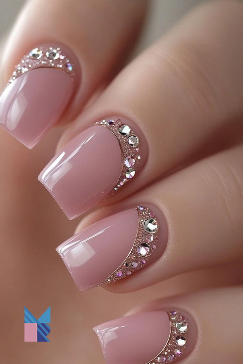 سنگ های کریستالی و مروارید های براق که جلوه ای درخشان به ناخن ها میدهند.