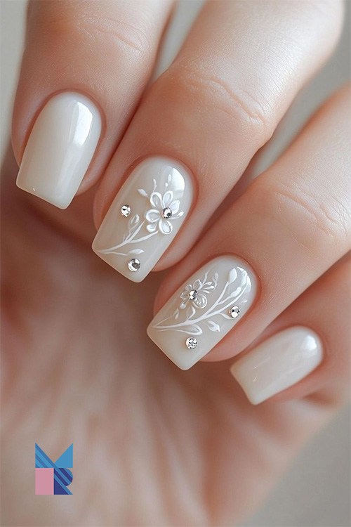 مناسب برای عروسهایی که به دنبال طراحی ناخنهایی با سبک ساده و شیک هستند.